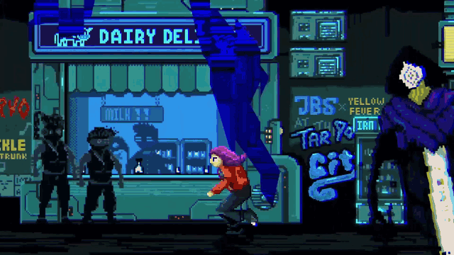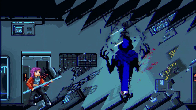 Pixelated protagonist character